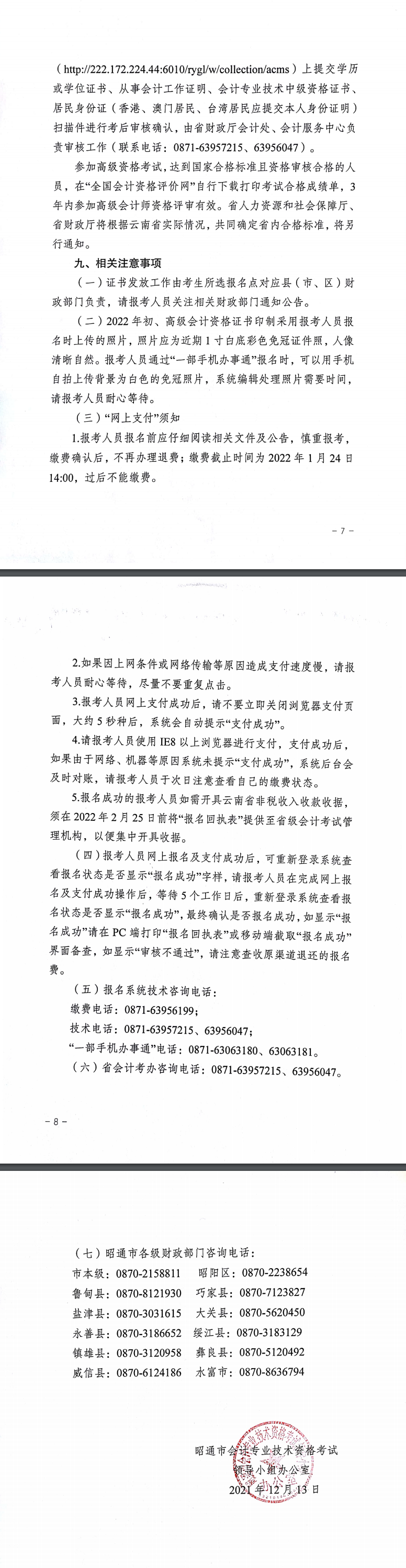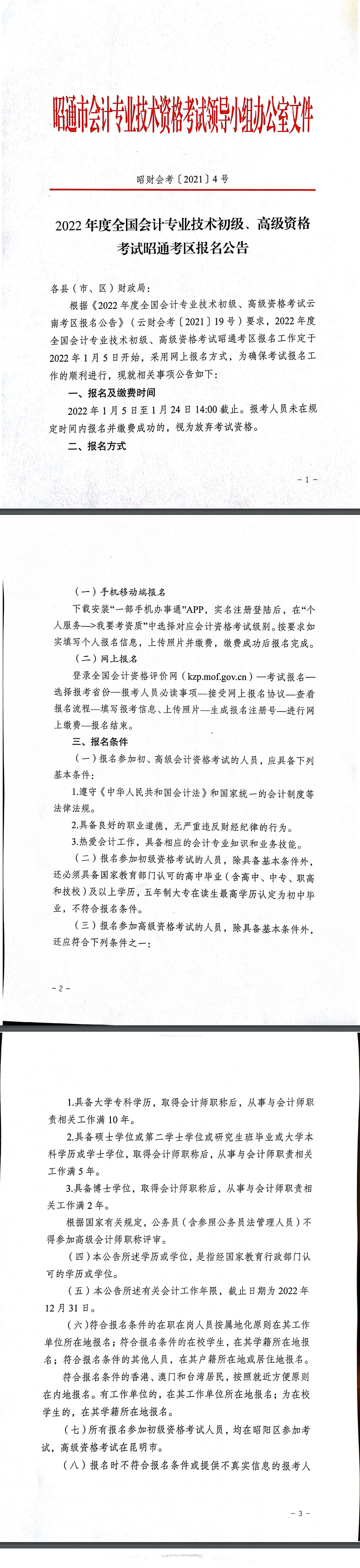 昭财会考[2021]4号-2022年度全国会计专业技术初级、高级资格考试昭通考区报名公告.pdf