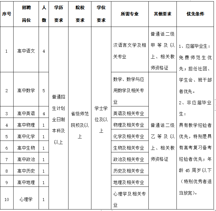 5.具有教育教学经验,特别是高考复习备考经验者,可直接电话联系面谈。