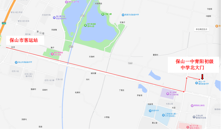 2.保山一中青阳初级中学考点,地址:保岫东路延长线与青堡路交叉口东北角,考生可乘坐7路、10路、11路线公交车到达。(首末班时间6:00—19:00)该考点由学校北大门进入。