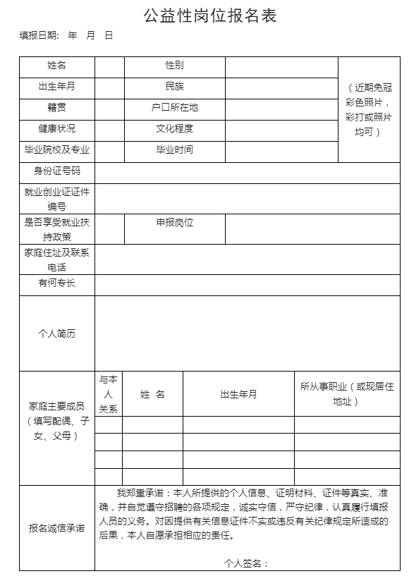 (二)现场报名:2022年8月8日至2022年8月12日工作时间内,在隆阳区纪委区监委组织部(学府路66号404室)报名,联系电话:0875—2169229。报名时需提供《就业创业证》或《就业失业登记证》、本人户口本、有效身份证、毕业证、残疾证(如有)原件及复印件各一份和公益性岗位报名表(附后)一份以及其他证明符合招聘范围和对象的材料;