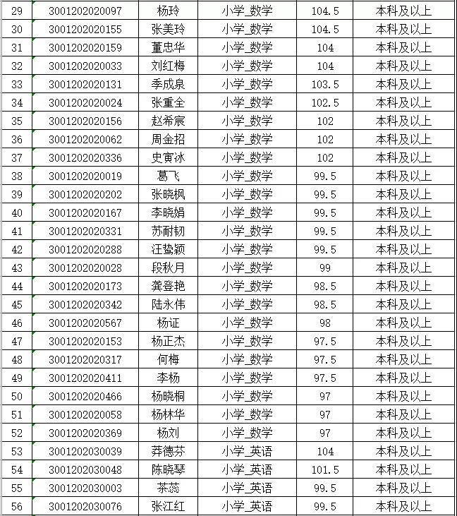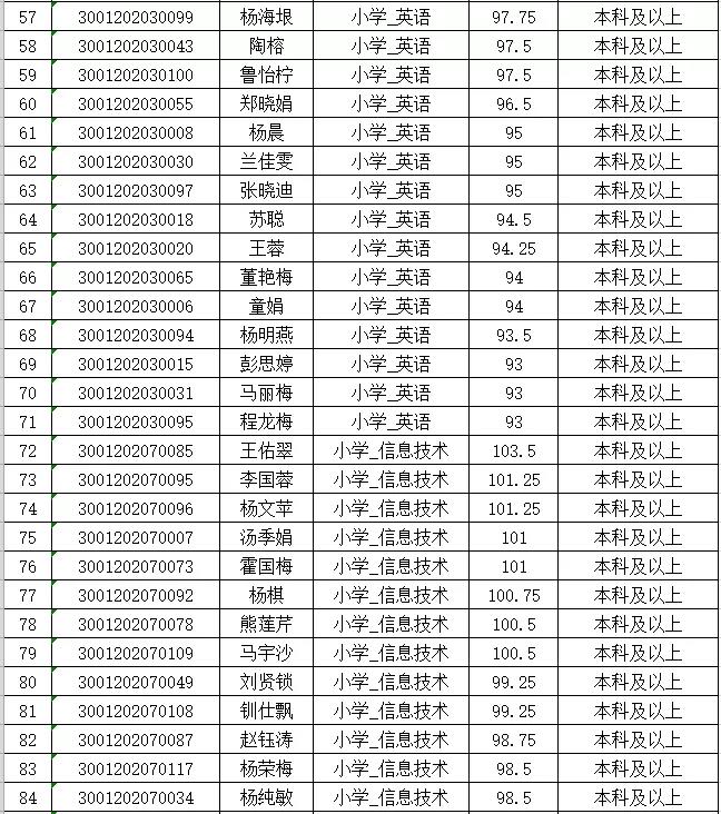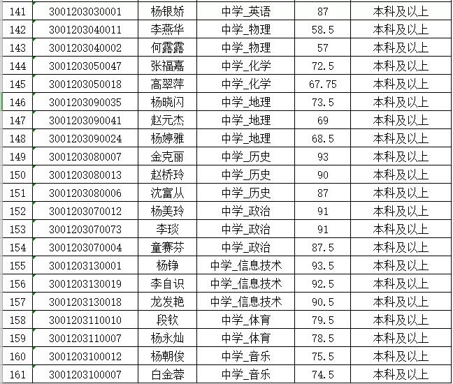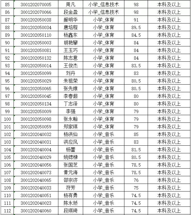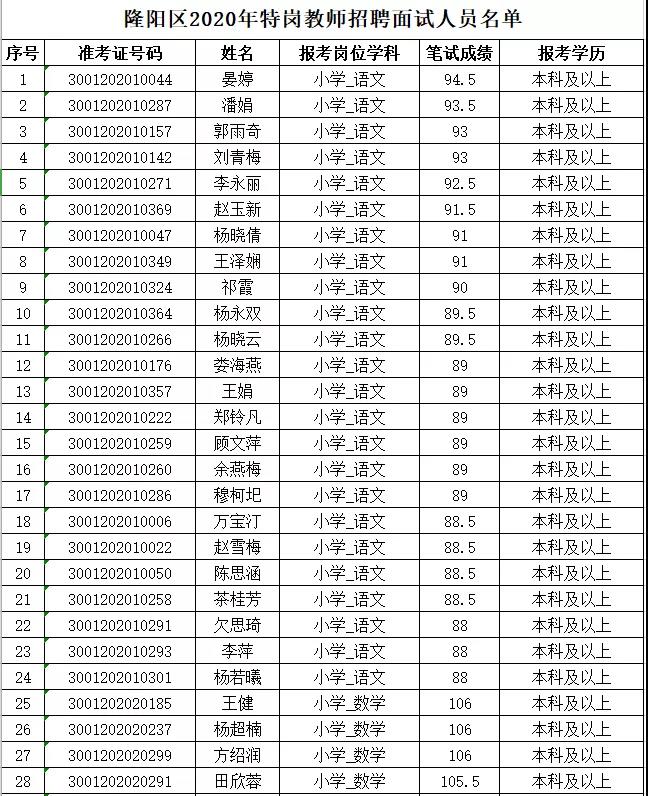 附:2020年隆阳区特岗教师招聘进入面试人员名单