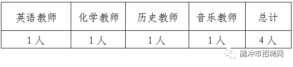 高中英语教师1名,高中化学教师1名,高中历史教师1名,高中音乐教师1人。