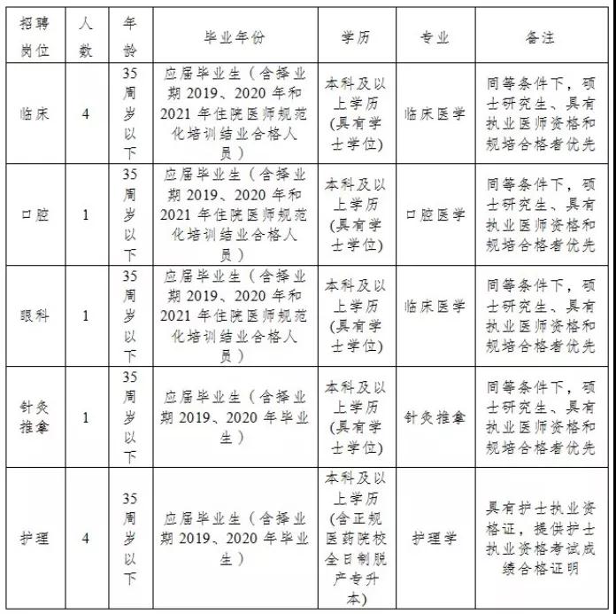 笔试和面试各100分。总成绩按100分制计算,总成绩为笔试成绩×50%+面试成绩×50%,具有硕士研究生学历的考生面试成绩即为总成绩,60分以上为合格。考试总成绩相同的情况下,硕士研究生、完成住院医师规范化培训者或具有执业医师资格证者优先聘用。
