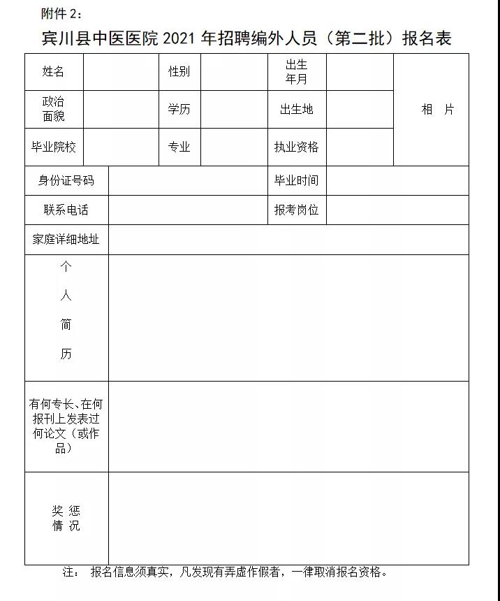 2.《宾川县中医医院2021年招聘编外人员(第二批)报名表》