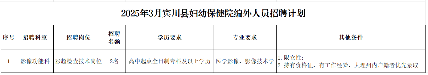 宾川县妇幼保健院2025年面向社会公开招聘编外人员公告