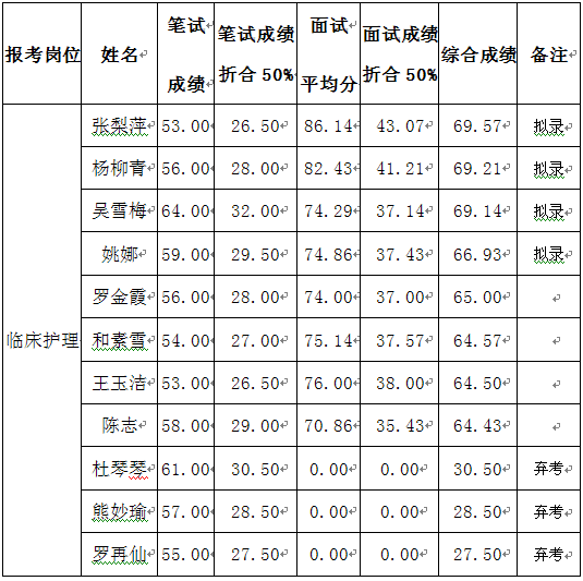 公开招聘第四批非事业编制 护理人员补录公示