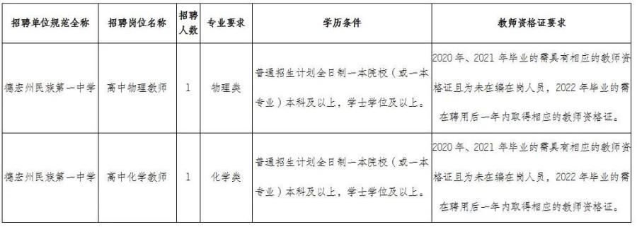 为进一步提高教育教学质量,加强教师队伍建设,按照中共德宏州委机构编制委员会办公室《关于同意2022年度州教育体育局下属事业单位选优的批复》,拟面向社会公开考核招聘紧缺专业学科优秀人才2名。