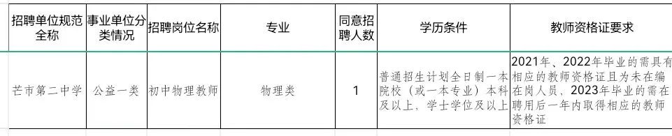3.具体岗位条件详见《2023年芒市第二中学考核招聘紧缺专业学科优秀人才岗位计划表》。