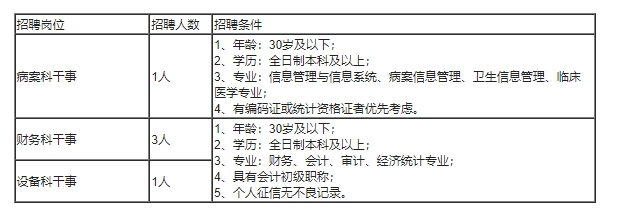 【招聘】病案科、财务科、设备科需招聘干事5名