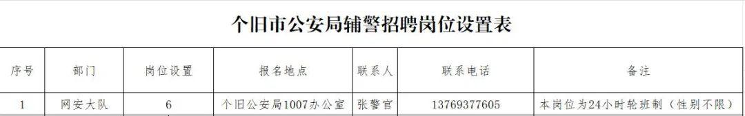根据工作需要,个旧市公安局面向社会公开招聘辅警,现将有关事项公告如下:
