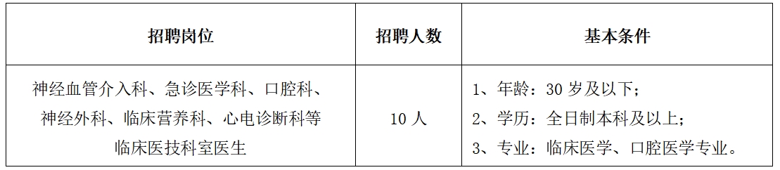 此次招聘会将同时进行我院编外医生的自主招聘及签约,岗位及基本条件如下: