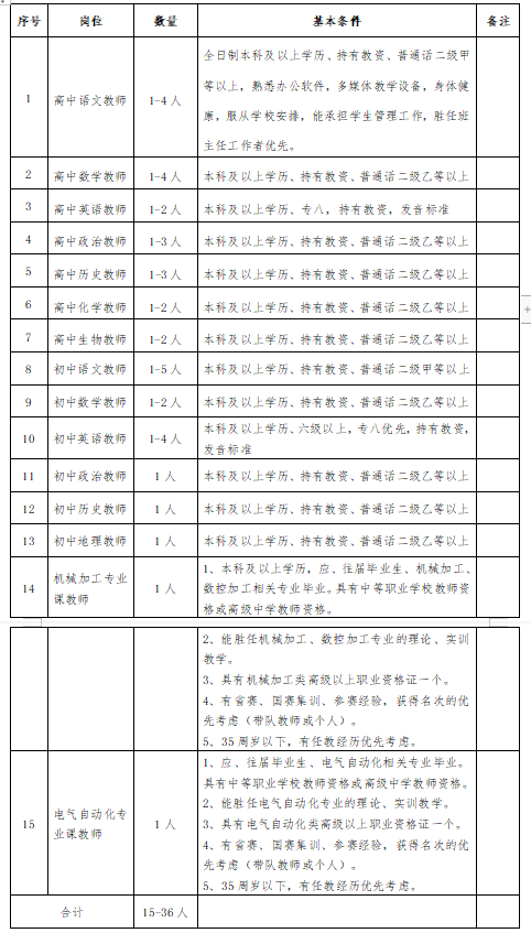 长期招聘高中、初中、小学,职教各学科优秀教师,年龄不超过62岁。有多年毕业班教学经验和班级管理经验者优先。