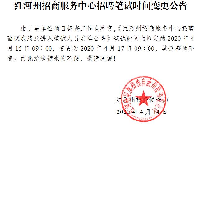 红河州招商服务中心招聘笔试时间变更公告