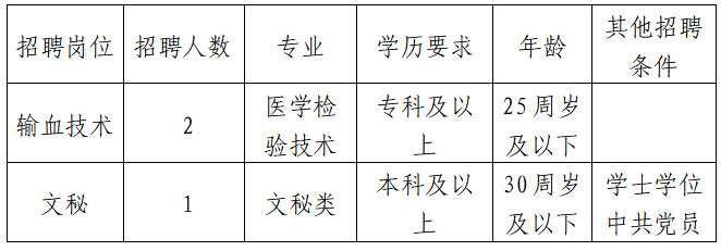 (四)报名地点:云南省红河州蒙自市富春路中心血站五楼人力资源管理科。