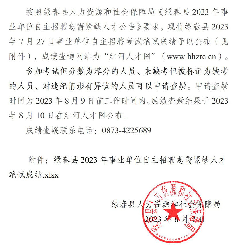 附件: 绿春县2023年事业单位自主招聘急需紧缺人才笔试成绩.xlsx