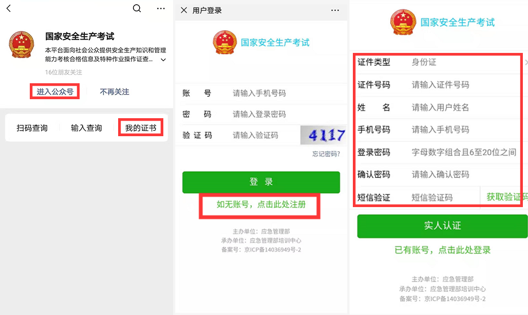 ① 从微信搜索“国家安全生产考试”,进入并关注公众号(扫描下方二维码):