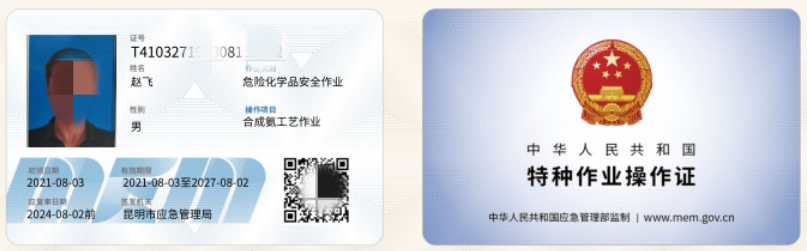 发证机关是由“应急管理局”(原来的安监局)颁发,证书3年1审,6年1换。