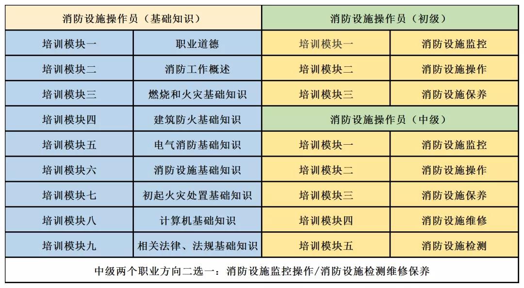 —— 修改了职业功能 。原“建(构)筑物消防员”含有消防安全检查、消防控制室监控、建筑消防设施操作与维护、消防设施维护与评估、消防安全管理与培训5个职业功能;新“消防设施操作员”含有 设施监控 、设施操作、设施保养、设施维修、设施检测、技术管理与培训 6个职业功能。