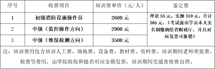 3、学员在考取全国通用的“消防设施操作员”《职业资格证书》前,在一定期限内可凭我院《结业证》为持证上岗证书的凭证,接受当地公安消防和安监部门的检验。考核合格后由国家人力资源与社会劳动保障部、应急部消防局及消防行业鉴定指导中心联合颁发职业资格证书。