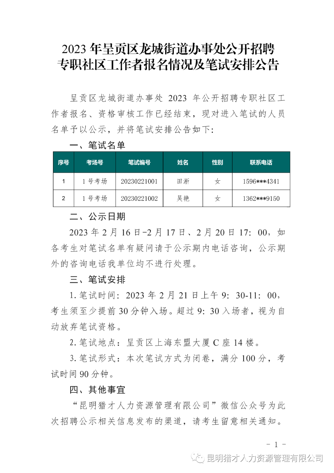 公开招聘专职社区工作者报名情况及笔试安排公告