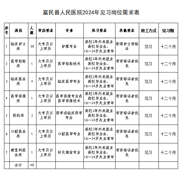 2024年富民县人民医院关于招聘见习岗位工作人员公告