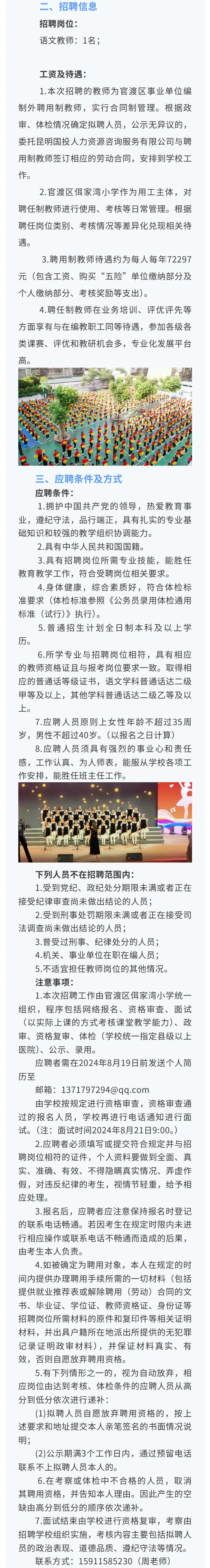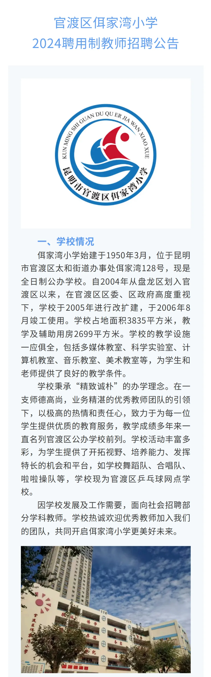 官渡区佴家湾小学2024年聘用制教师招聘公告