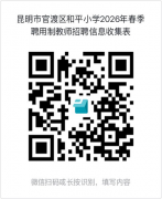 2026年昆明市官渡区和平小学春季聘用制教师招聘报名时间:2026年2月26日至2026年3月1日下午18:00,周末均可报名。