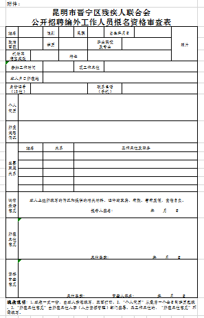 附件:昆明市晋宁区残疾人联合会公开招聘编外工作人员报名资格审查表