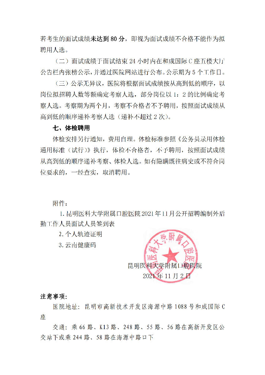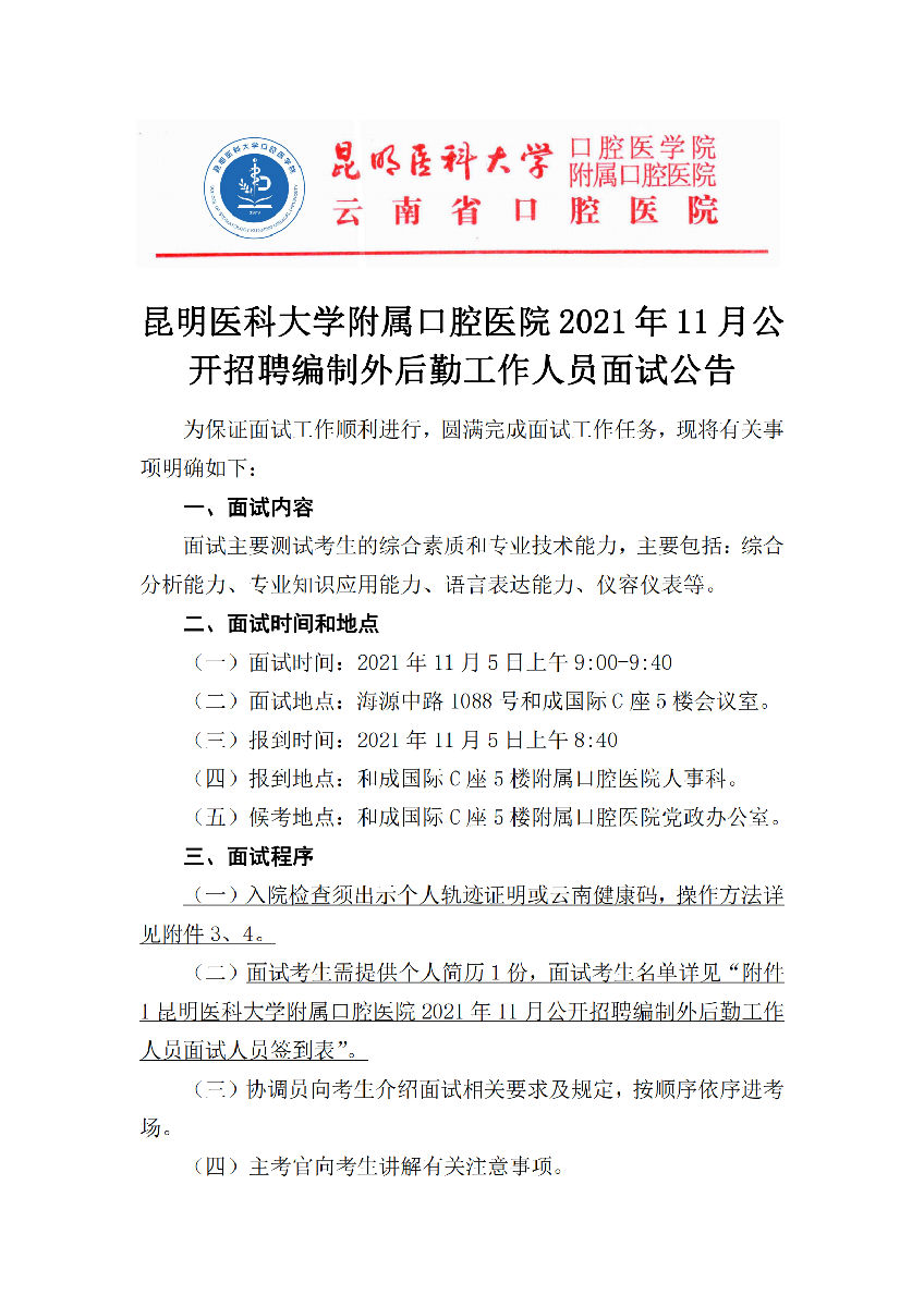 2021年11月公开招聘编制外后勤工作人员面试公告