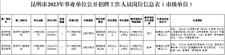 转自昆明市人力资源和社会保障局 “昆明市2023年事业单位公开招聘工作人员公告”