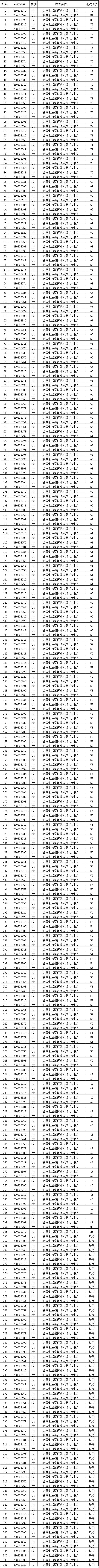 昆明市监察委员会2023年合同制监察辅助人员笔试成绩公示