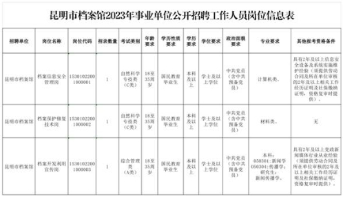 昆明市档案馆2023年公开招聘公告
