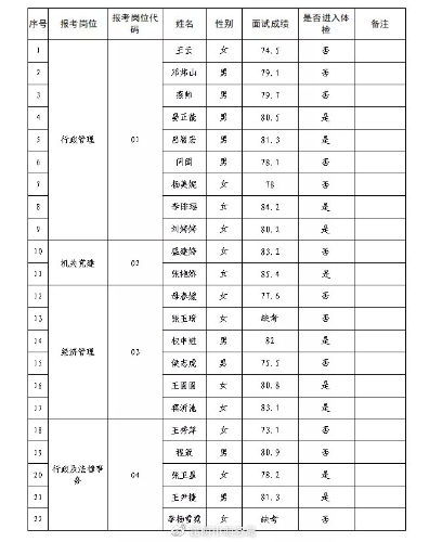制工作人员面试成绩及进入体检人员公告