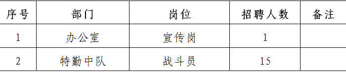 (1)战斗员岗位均要求全日制高中及以上学历,精神气质佳,身体素质过硬,具备良好的服从意识和执行力。