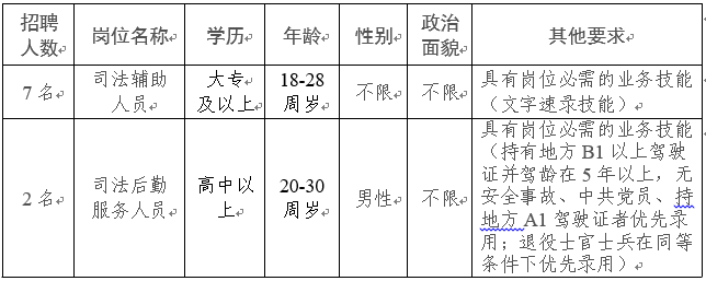 3、具备大专以上学历(法学、文秘、计算机专业优先录用);