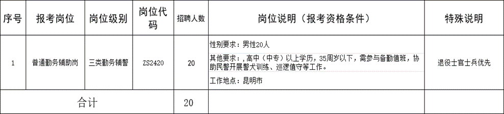 本次共招聘19人,单位为昆明市公安局各直属部门,岗位信息如下: