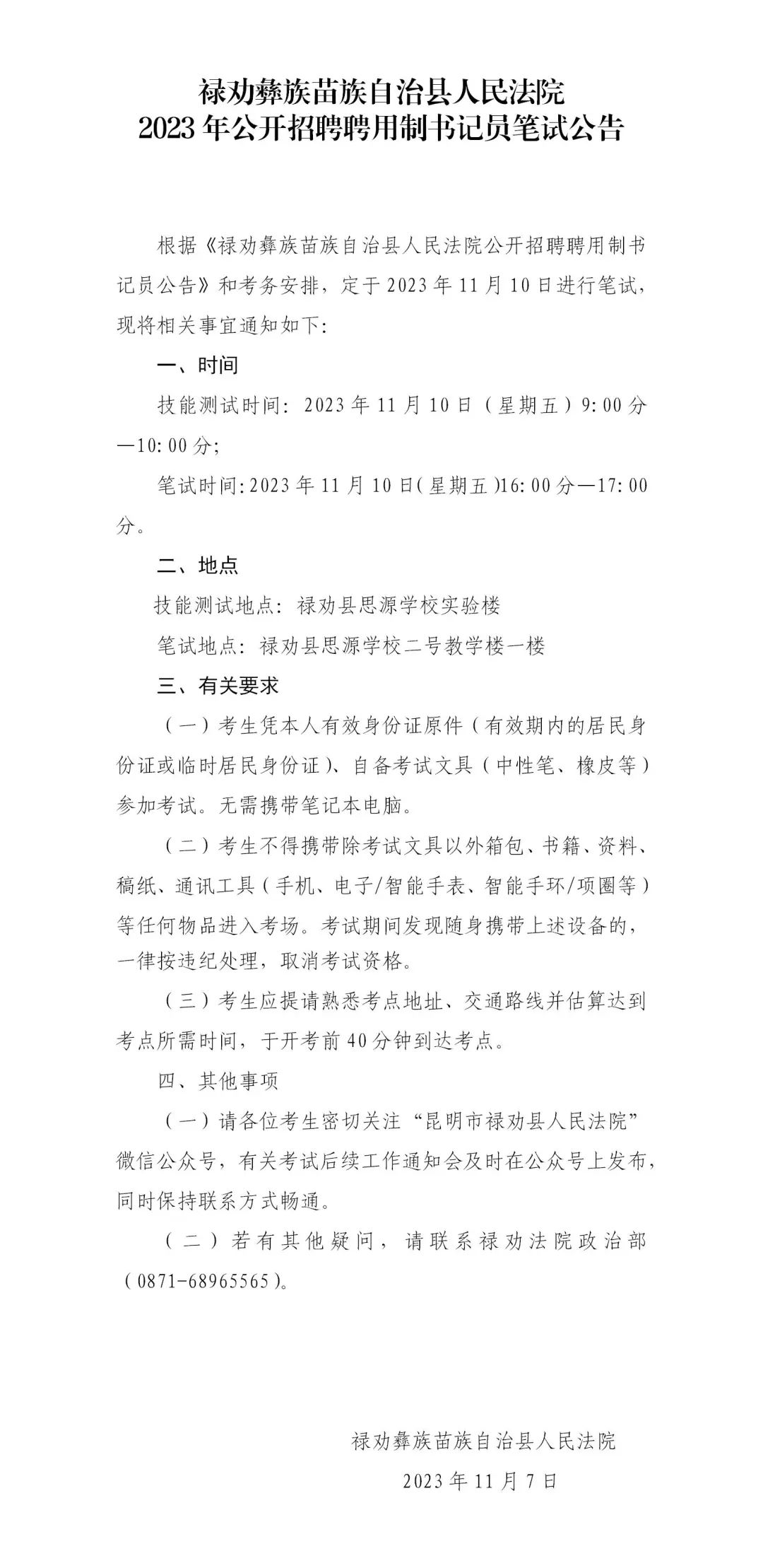 2023年公开招聘聘用制书记员笔试公告