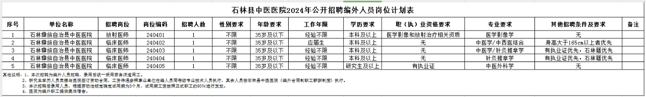 附件:《石林县中医医院2024年面向社会公开招聘编外人员岗位计划表》