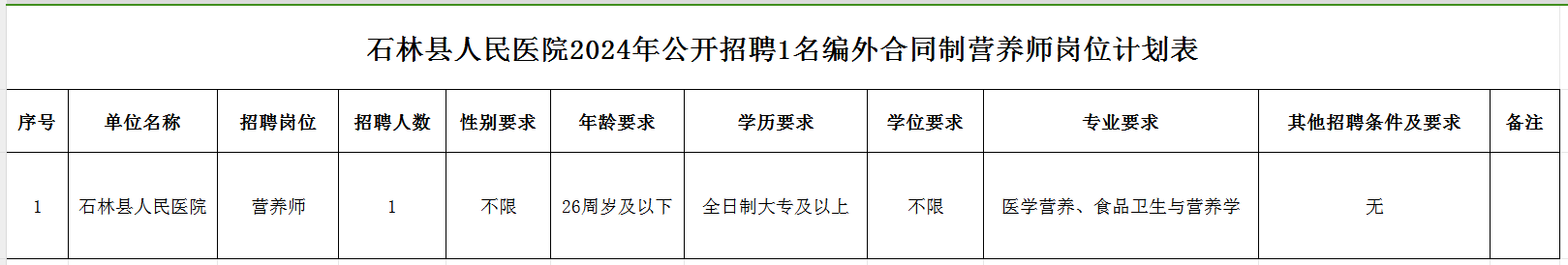 附件.石林县人民医院2024年公开招聘1名编外合同制营养师岗位计划表