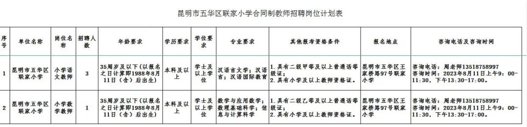 昆明市五华区联家小学2023年度合同制教师招聘启事