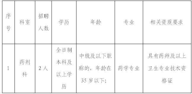 药学专业人员2名。