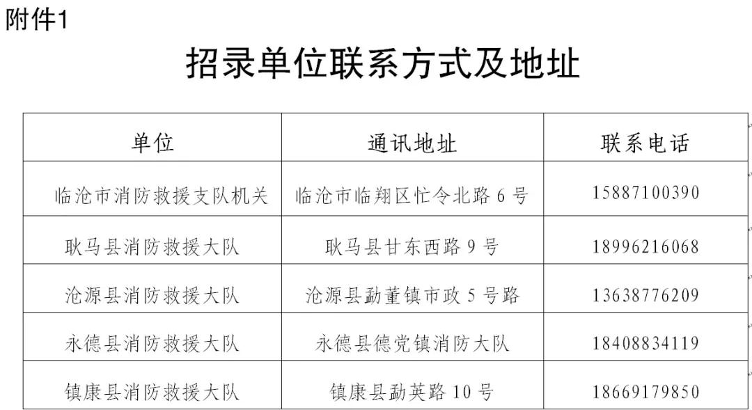 报名方式:此次招聘采取网络报名和现场报名,免交报名费,报考人员报名前仔细阅读此招聘公告。临沧市消防救援支队机关招聘岗位采取网络报名,各县消防救援大队招聘岗位采取现场报名。