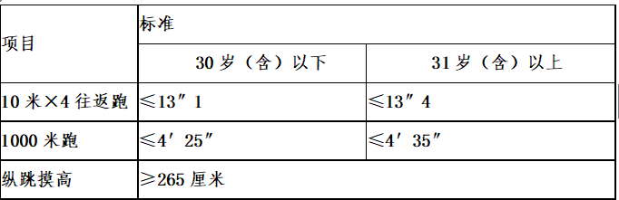 2.体能测试为达标制,并采取一票否决制。达到规定项目标准即为合格,否则为不合格,进入笔试环节。