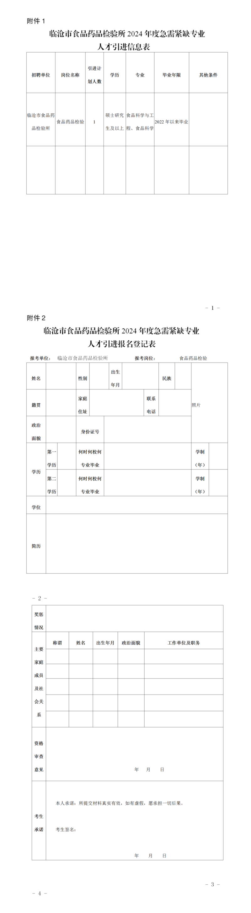 附件:1.临沧市食品药品检验所2024年度急需紧缺专业人才引进信息表