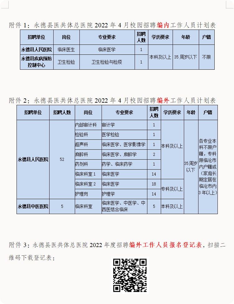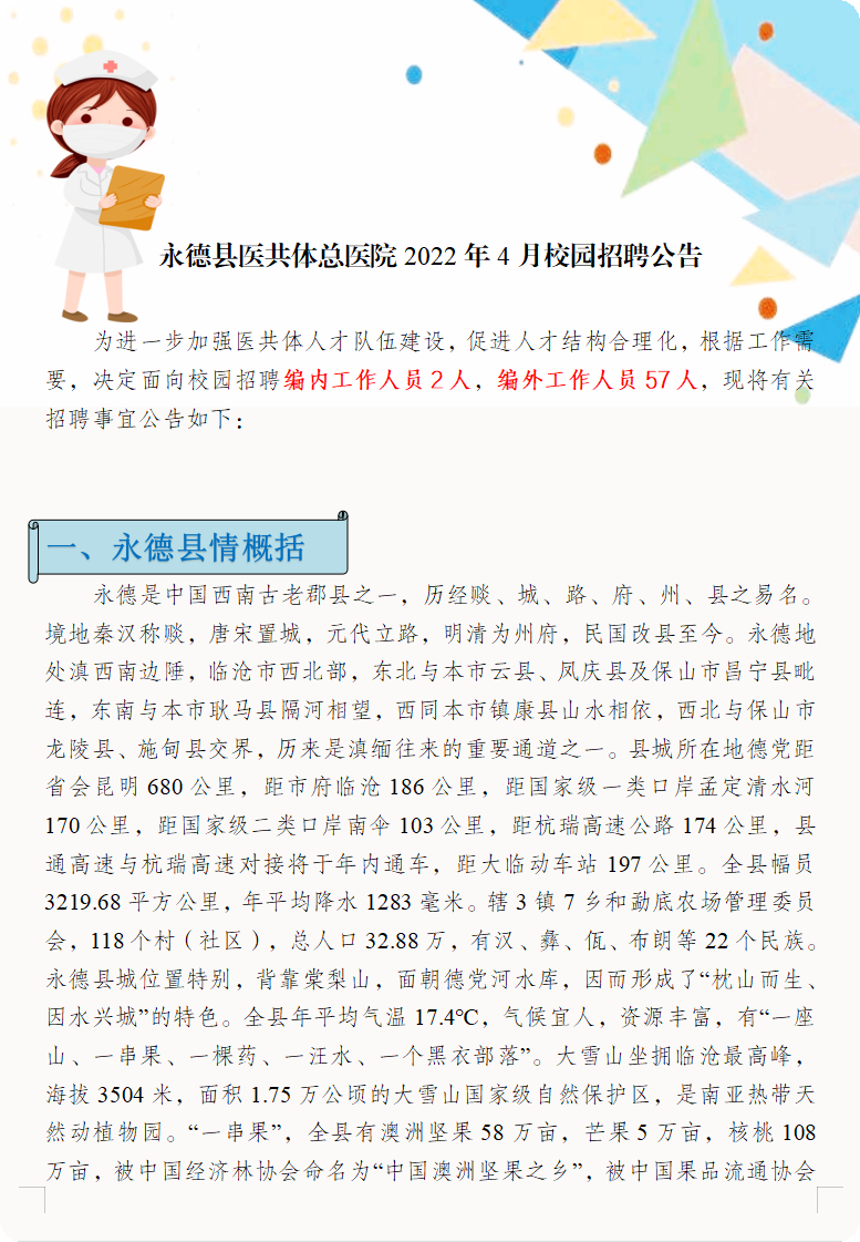 永德县医共体总医院2022年4月校园招聘公告