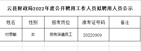 云县财政局2022年度公开聘用工作人员拟聘用人员公示