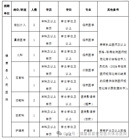 为进一步加强医共体卫生专业技术人才队伍建设,优化人才队伍结构,经研究,镇康县紧密型医共体总医院决定面向社会招聘17名编制外人员,现将有关事宜公告如下: