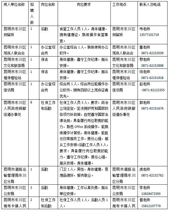 本次招聘公益性岗位28名,详见《东川区公益性岗位招聘岗位表》。