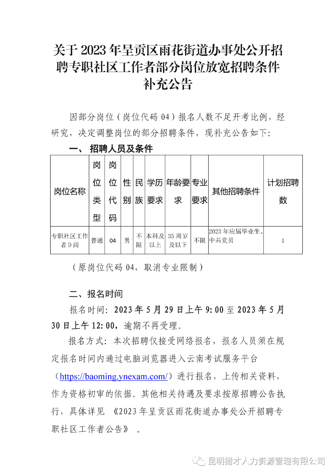 公开招聘专职社区工作者部分岗位放宽招聘条件补充公告
