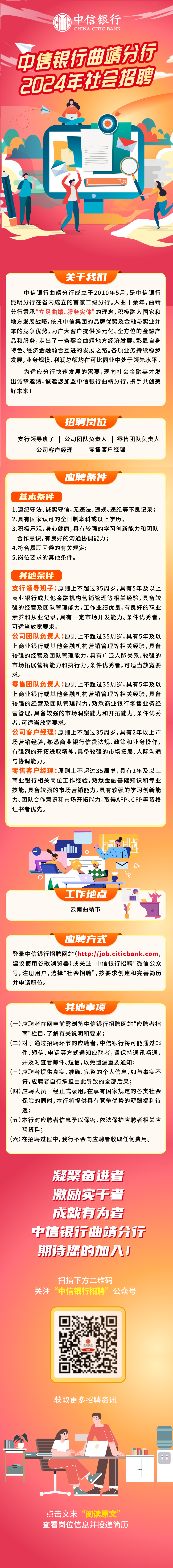 中信银行曲靖分行2024年社会招聘